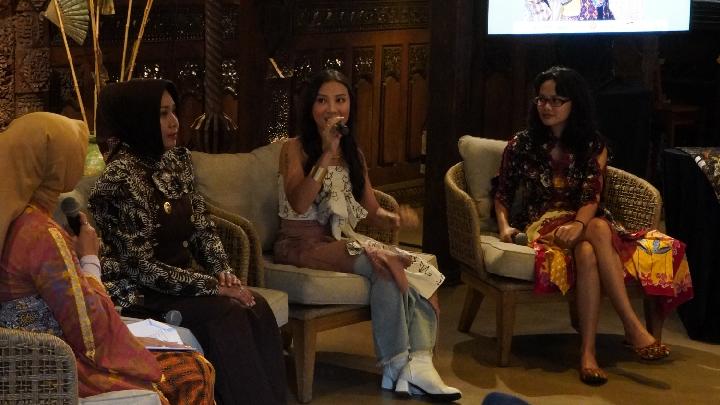 Walikota Mojokerto Ika Puspitasari (Ning Ita), Asteriska Barasuara, dan Founder Nona Srikaya Thiifa, di acara talkshow "From Heritage to Your Daily Look" yang digelar Cantika di Plataran Dharmawangsa, Selasa, 28 Oktober 2025. Foto CANTIKA/Ricky Nugraha