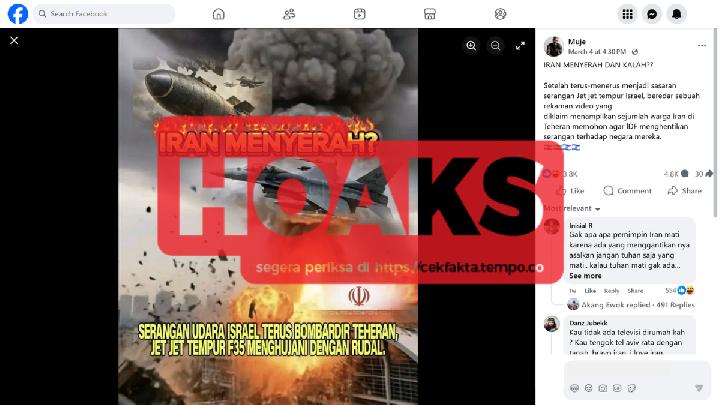 Tempo’s verification concludes that the narrative claiming Iran surrendered to Israel and the United States in the war initiated by the two Western Bloc countries is false.