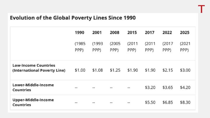 In June 2025, the World Bank published the Global Poverty Lines document. This update follows the release of the International Comparison Program (ICP)'s latest purchasing power parity (PPP) data in May 2024.