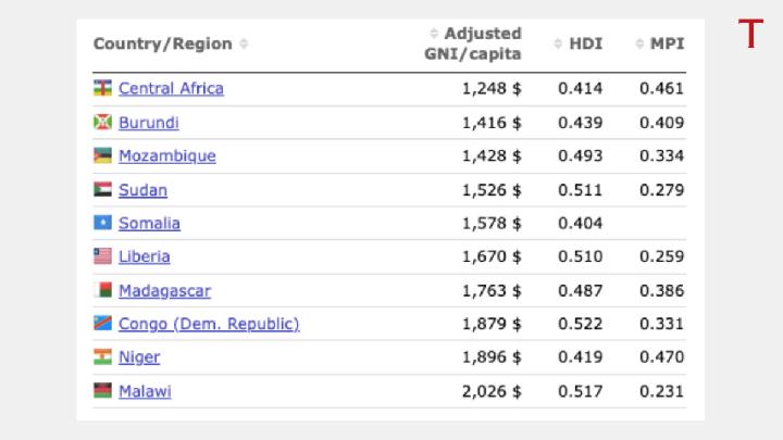 Who are the countries with the lowest incomes in the world?