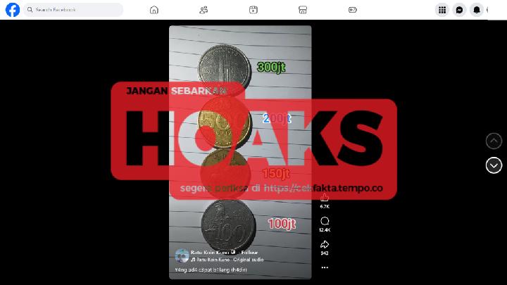 TEMPO.CO, Jakarta - A number of Facebook accounts [archive] uploaded claims regarding four Indonesian coins valued at hundreds of millions of rupiah. The accounts asked citizens who own these coins to report them through the comment section.