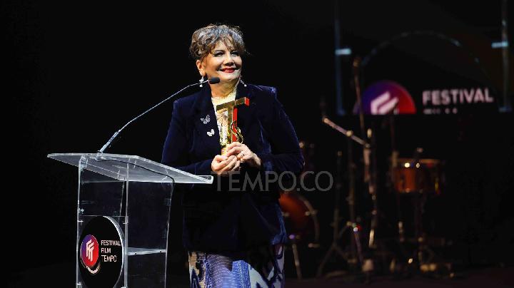Aktris Christine Hakim meraih penghargaan Aktris Pendukung Pilihan dalam filmnya "Pangku" di ajang Festival Film Tempo 2025 di Graha Bhakti Budaya, Taman Ismail Marzuki, Jakarta, 26 Januari 2026. Tempo/ Fardi Bestari