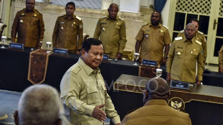 President Prabowo Subianto gives instructions to local authorities in Papua and the Executive Committee for the Acceleration of Special Autonomy Development at the State Palace, Jakarta, December 16, 2025. Tempo/Imam Sukamto